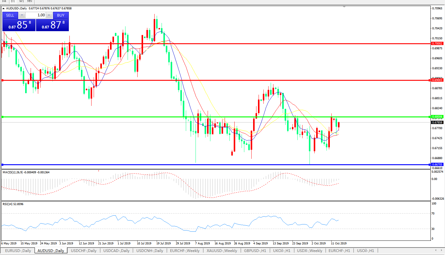 备选策略:0.6800上方看涨,目标0.6900、0.7000