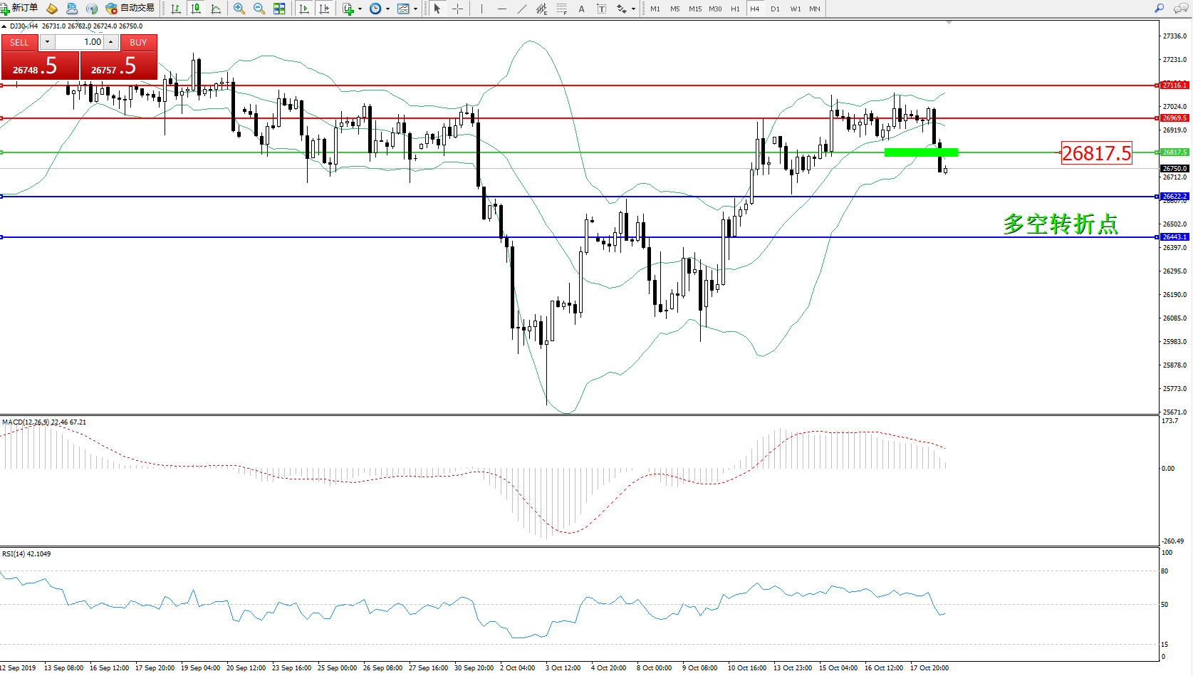 技术点评:高位震荡走势逐渐收窄,空头伺机入场,跌破布林带指标下轨后有继续下探迹象,且布林带指标呈张口走势,跌势或将扩大,MACD指标多头区域缓慢回撤至0轴线位置,RSI指标跌破50均衡线后进入空头区域震荡;