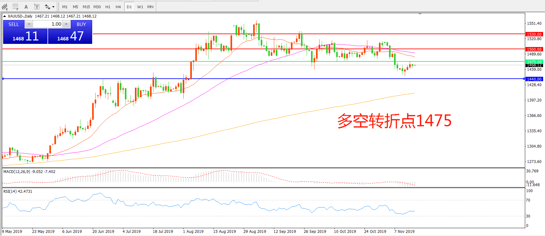 多空转折点:1475.00