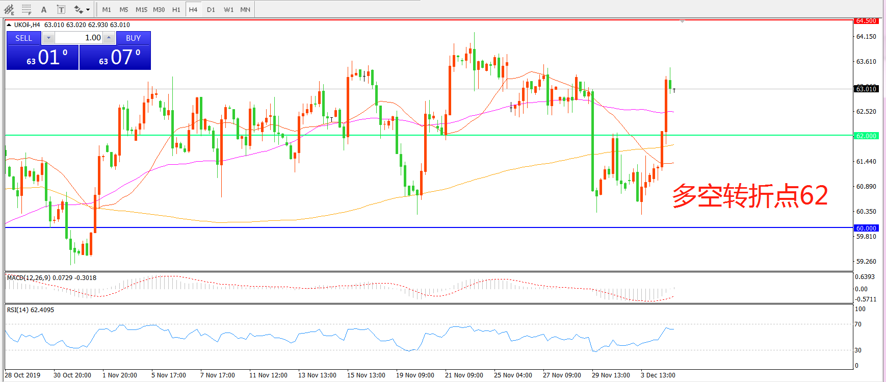 多空转折点:62.00