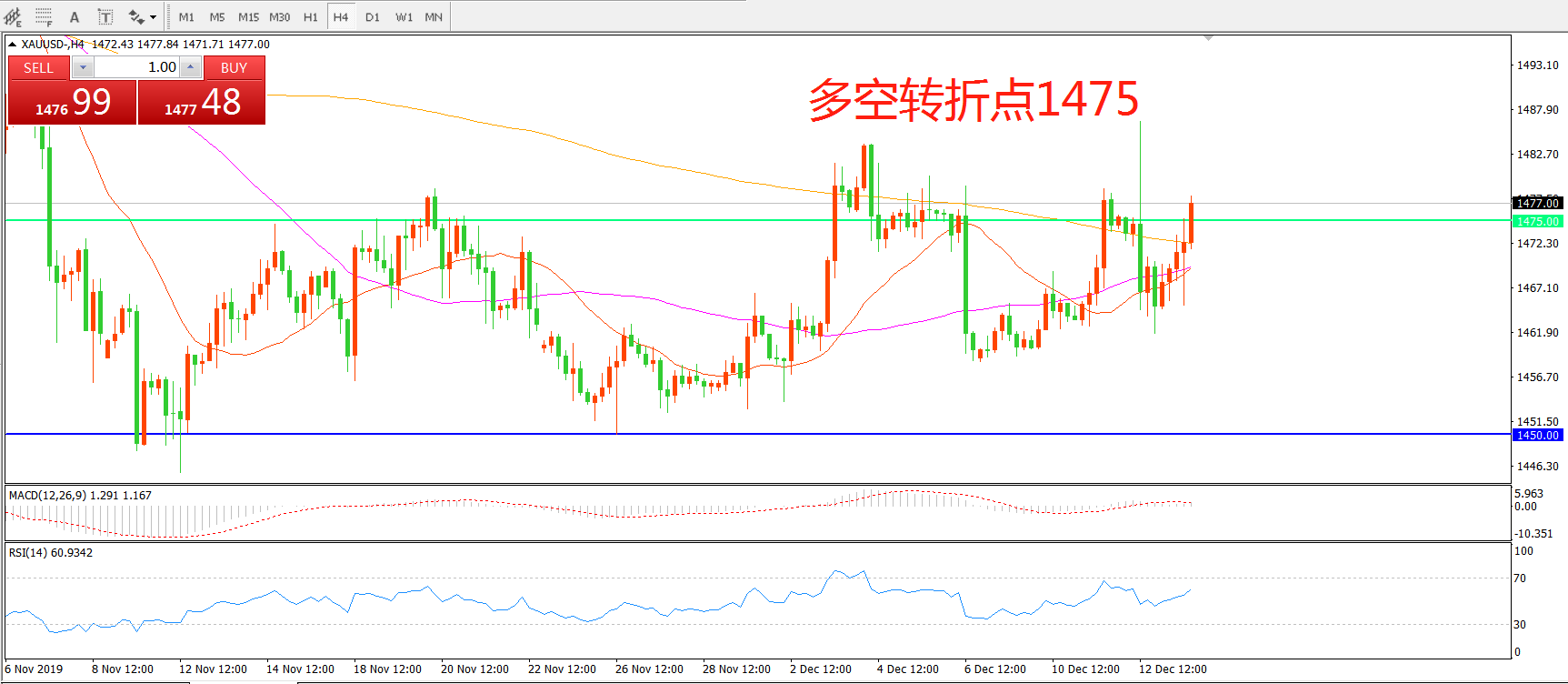 多空转折点:1475.00