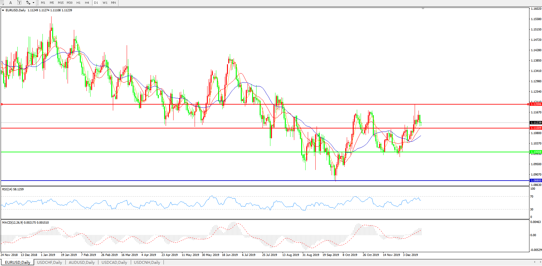 交易策略:1.1100上方看涨,目标1.1200、1.1300