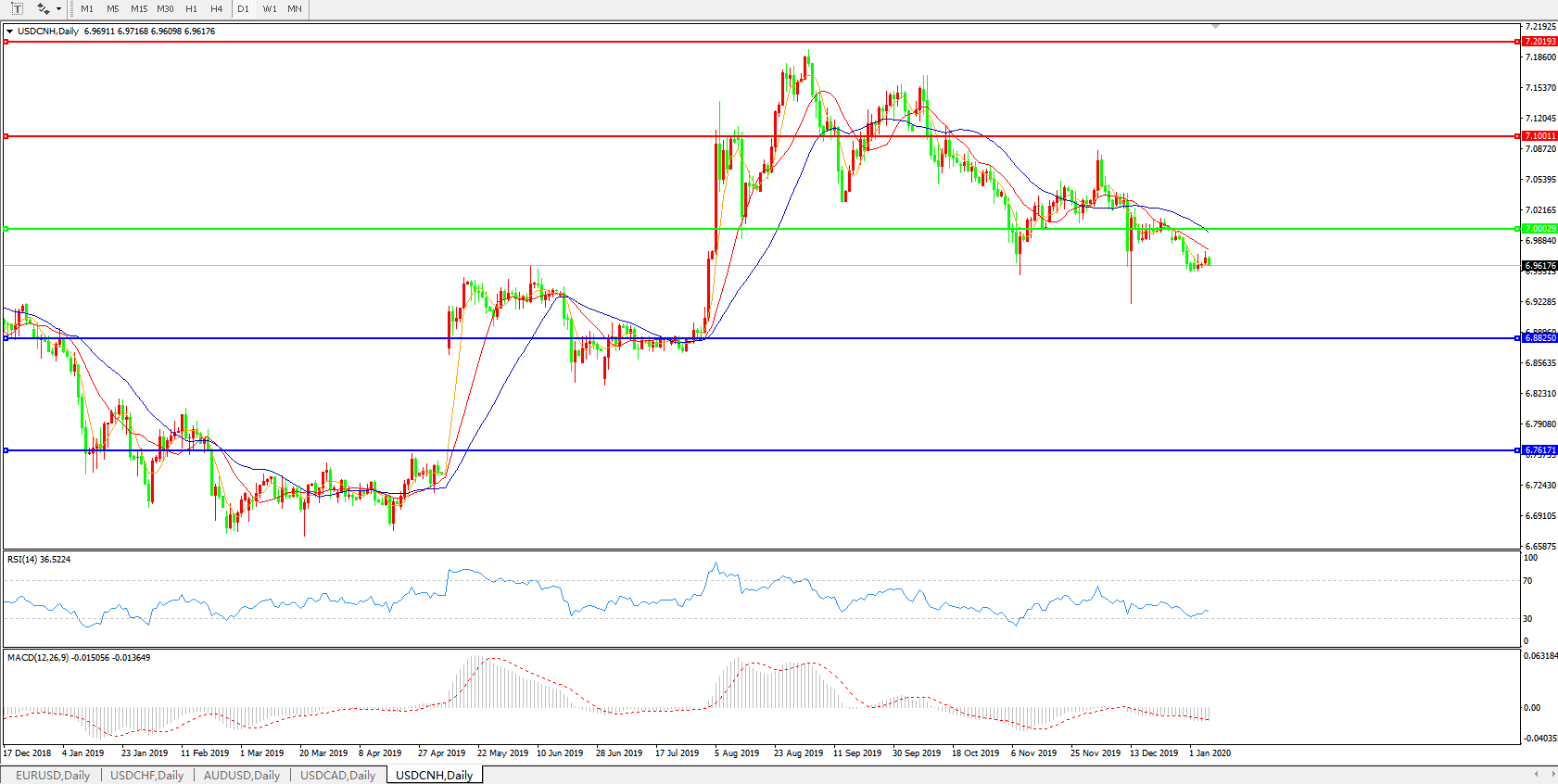 美元兑人民币USDCNH 日线图: