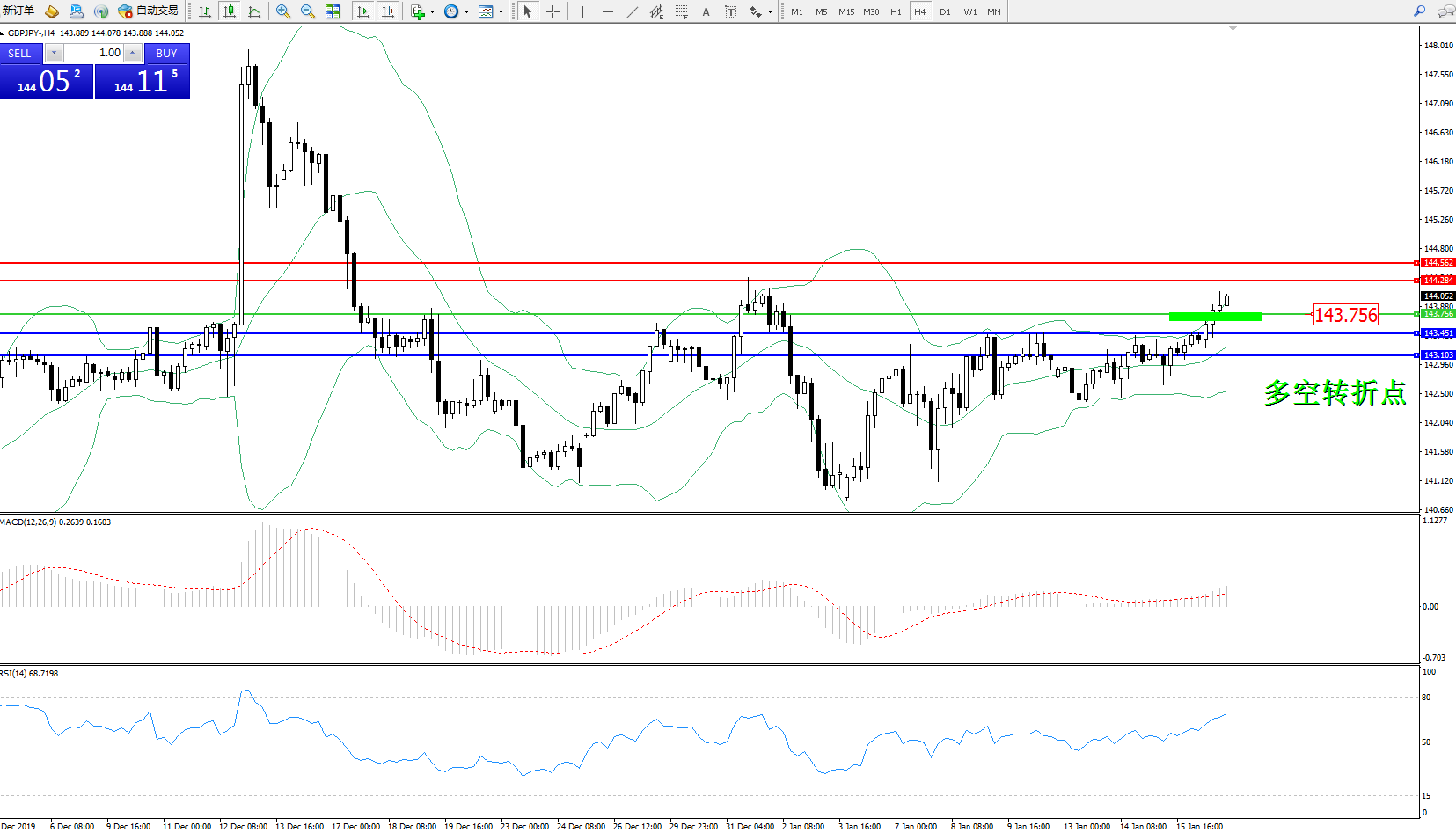 交易策略:143.756上方看涨,目标144.384、144.562