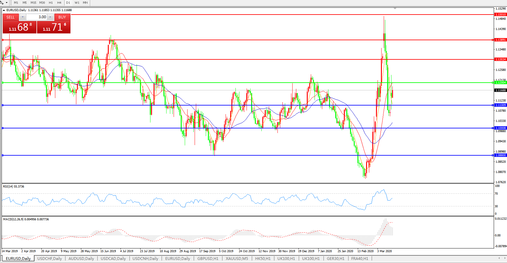 支撑位:1.1100 、1.1000、1.0880