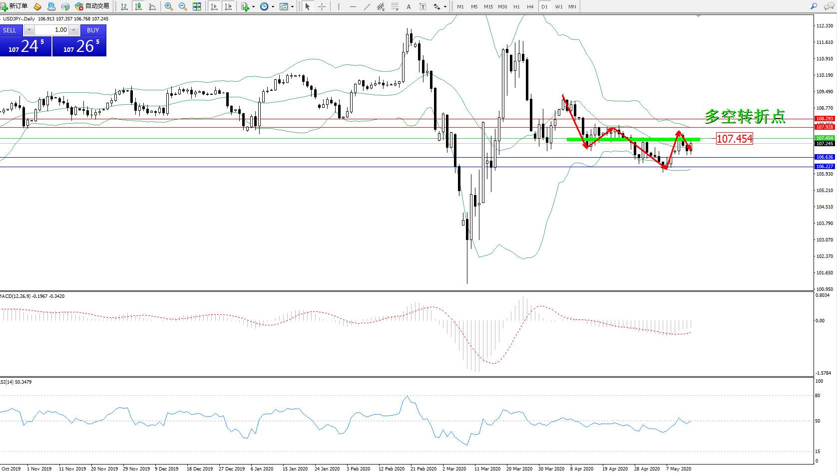 多空转折点:107.454