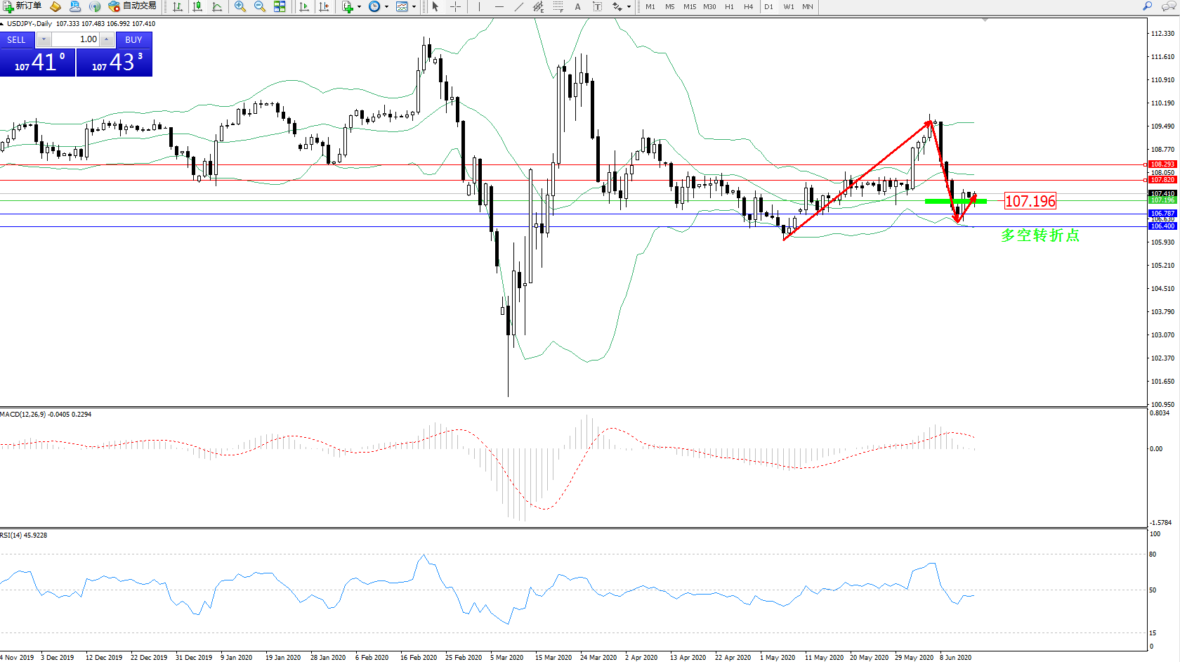 交易策略:107.196上方看涨,目标107.820108.293