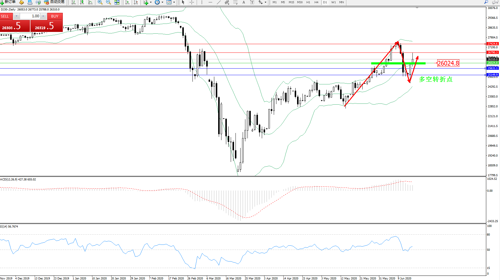 道琼斯指数6月16日(周二)收盘上涨526.80点,涨幅2.04%,报26289.98点。美国股市周二连续第三天上涨,投资者对美国经济复苏的乐观情绪超过了人们对多地新冠疫情恶化的担忧。标普500指数上涨1.9%,创一周多以来最大涨幅,能源、医疗保健和原材料类股引领所有11个行业板块走高。数据显示美国零售额创出历史最大升幅,一度推动该指数飙升。美国5月零售销售在连续两个月下滑后录得创纪录增幅,强化了不断增强的对美国经济最糟糕时期可能已经结束的看法。在与美国国会议员举行的为期两天的听证会的第一天,鲍威尔说,美国经济复苏的时机和力度存在很大的不确定性。