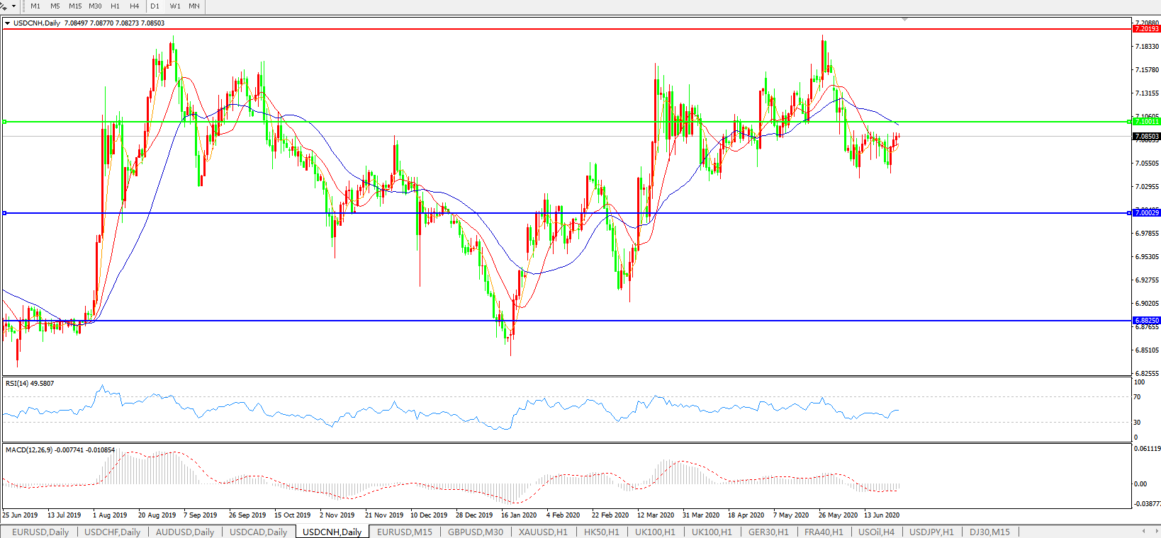 美元兑人民币USDCNH 日线图: