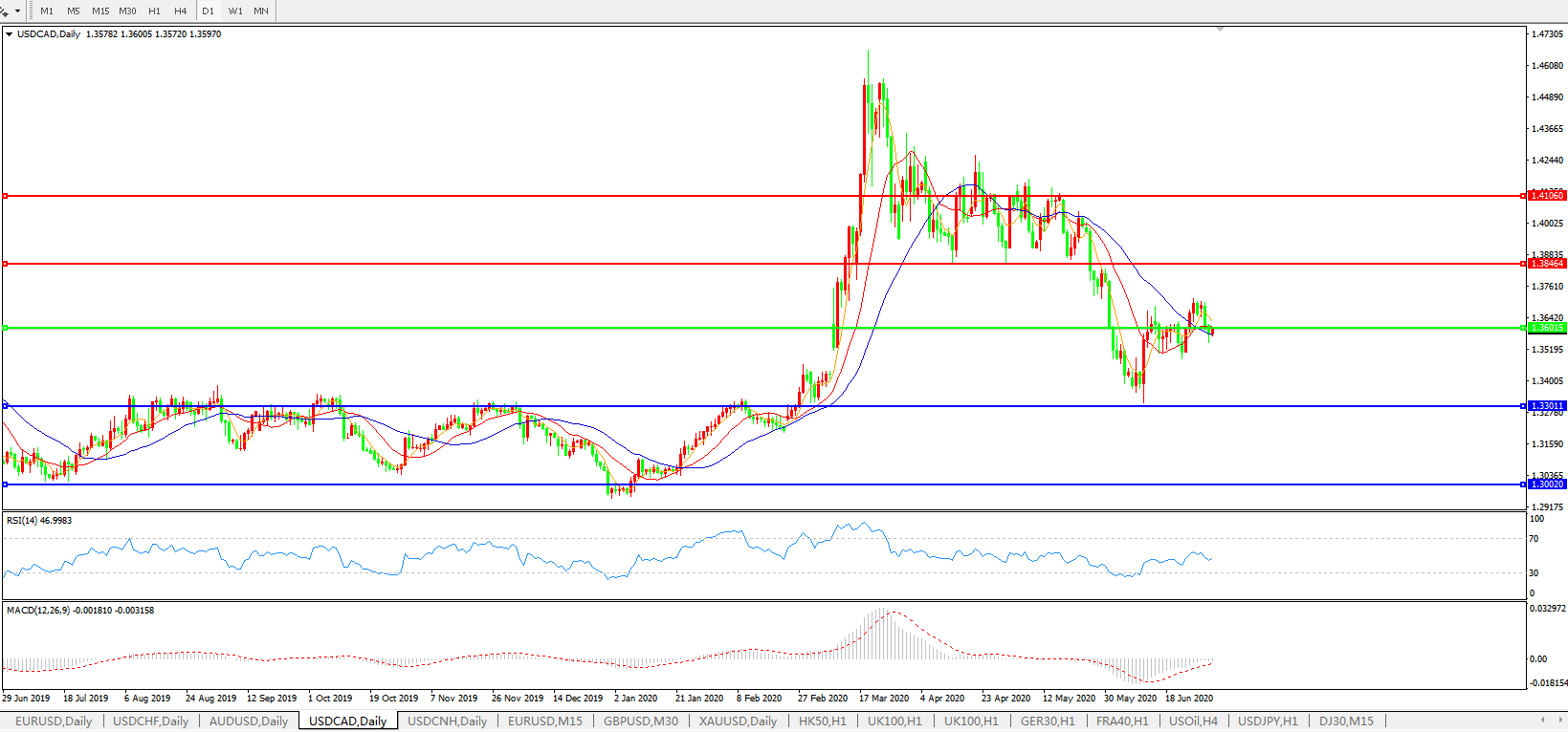 美元兑加元USDCAD    日线图: