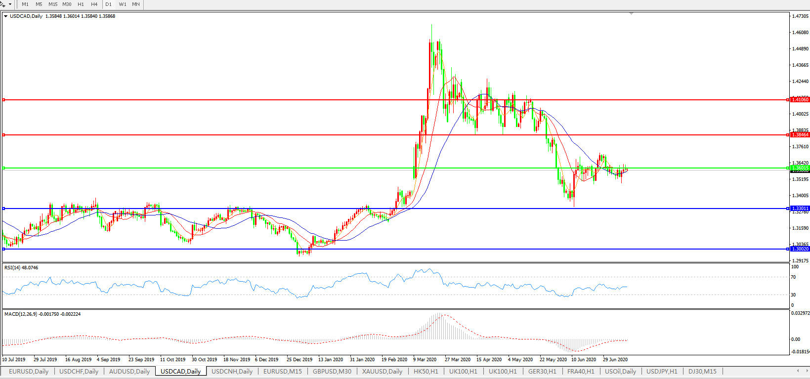 美元兑加元USDCAD    日线图: