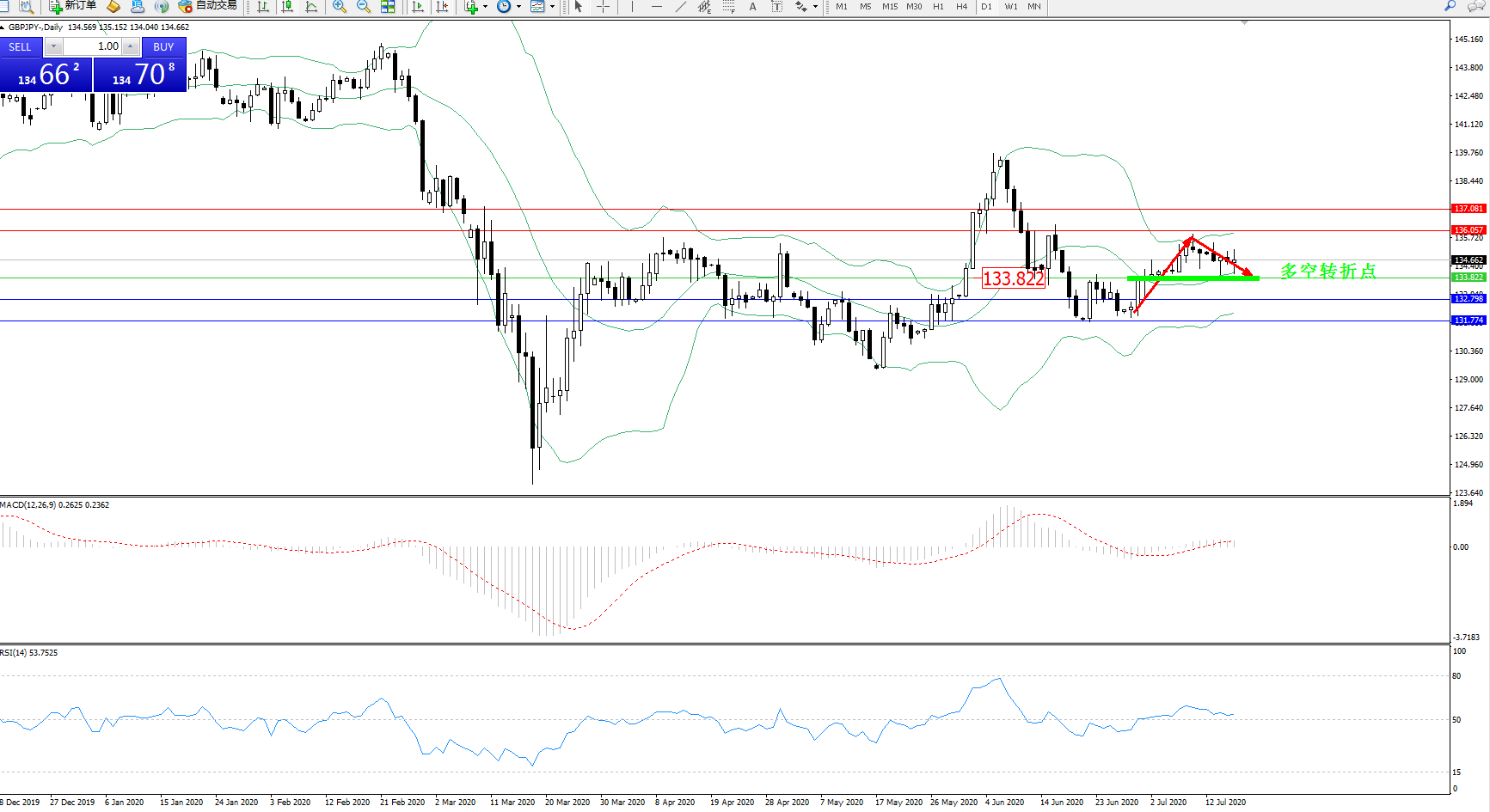 英镑兑美元处于1.34702附近整理,英国首相约翰逊715日在议会发表讲话称,政府正在尽其所能保护就业,但是一些工作岗位的损失是不可避免的。疫情被证明是严重的通货紧缩冲击。鉴于失业率可能大幅上升,工资增长走弱并保持疲软,预计该通缩趋势将继续。通胀将持续并大幅低于英国央行的通胀目标;因此,预计英国央行将进一步放宽政策,11月份将利率降至零,以预见的是,到今年年底,英国经济将面临更多的不确定性。届时,政府在疫情期间对企业和工人的支持计划将逐步取消,英国也将退出欧盟,可能不会达成贸易协议。