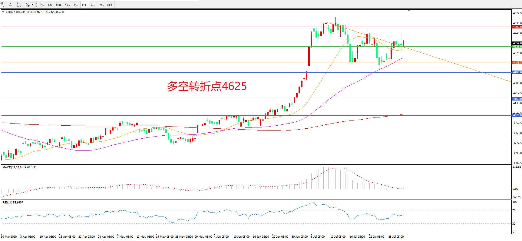 多空转折点:4625.00