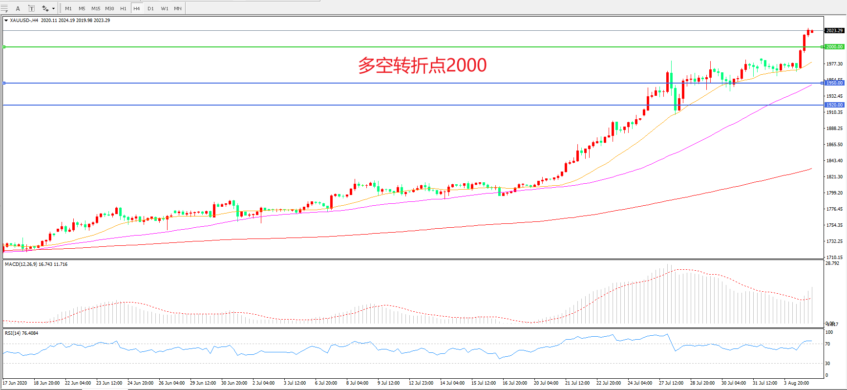 多空转折点:2000.00