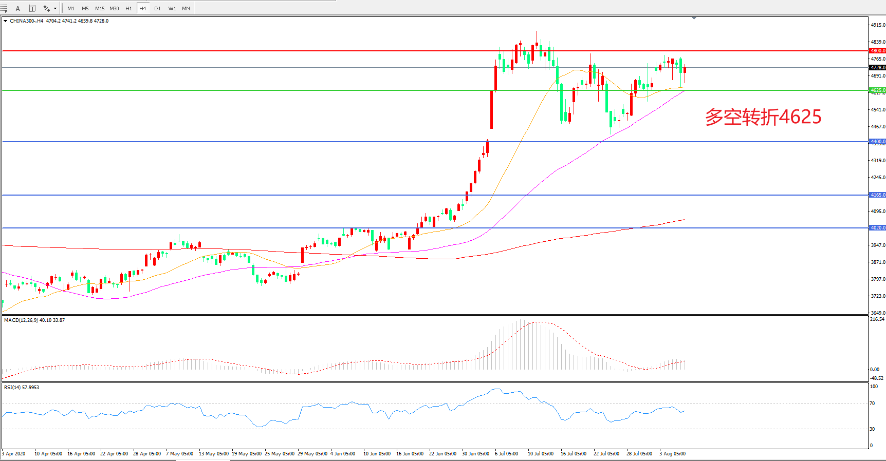 多空转折点:4625.00