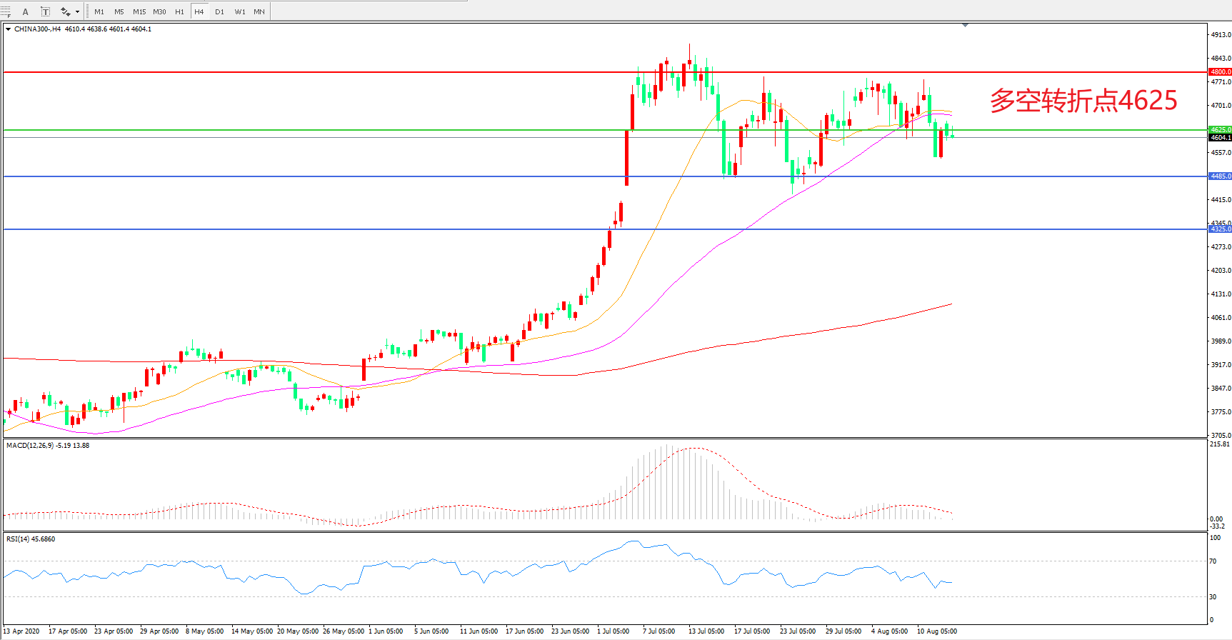多空转折点:4625.00