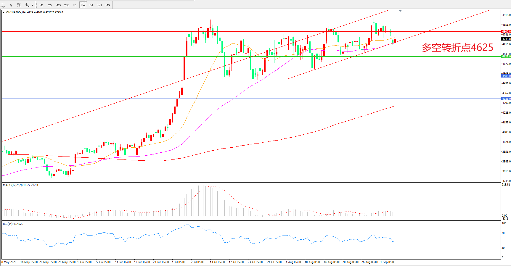 多空转折点:4625.00