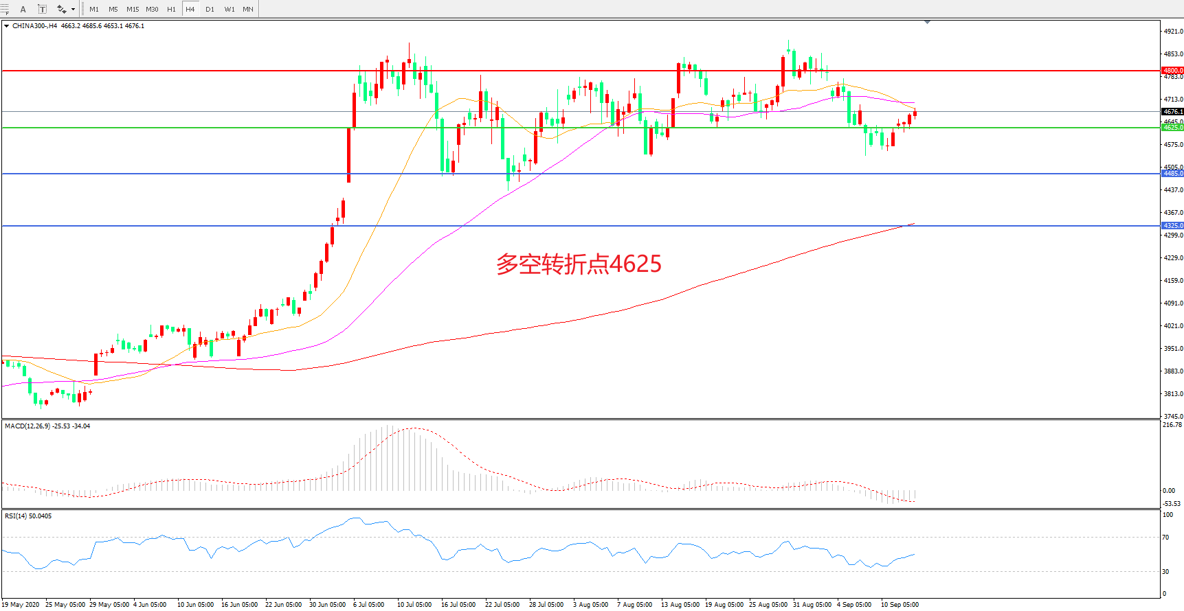 多空转折点:4625.00