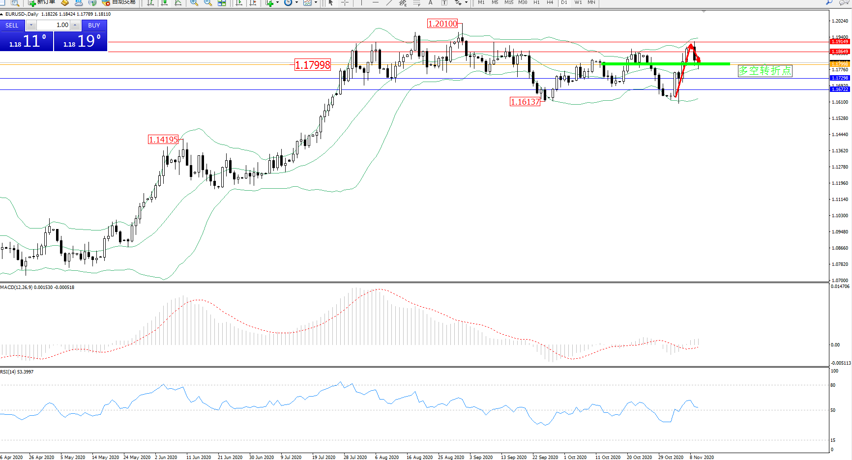 多空转折点:1.17998