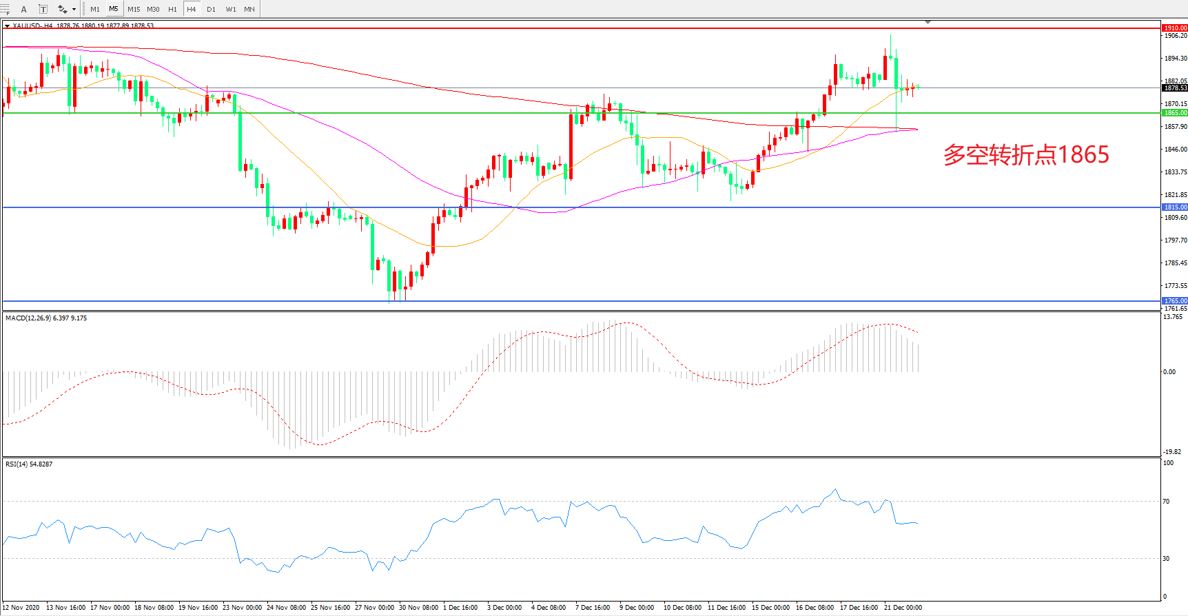 多空转折点:1865.00
