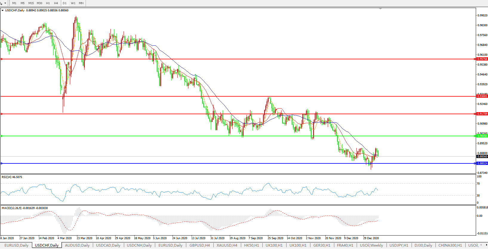 美元兑瑞郎USDCHF    日线图: