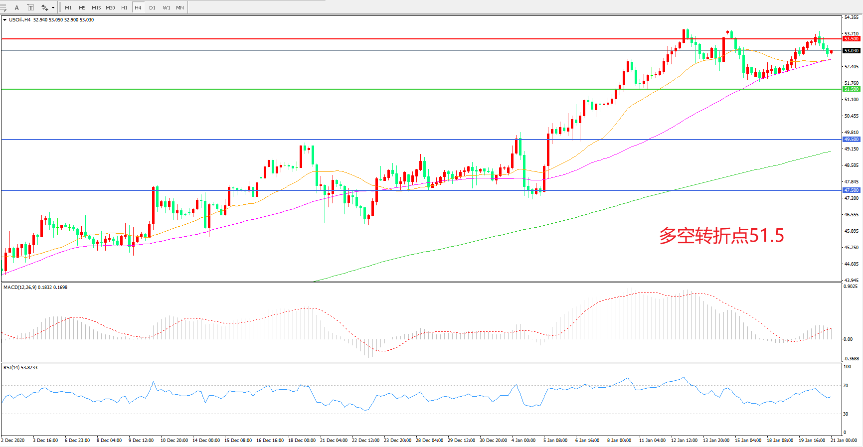 交易策略:在51.50之上看涨,目标53.50 57.00