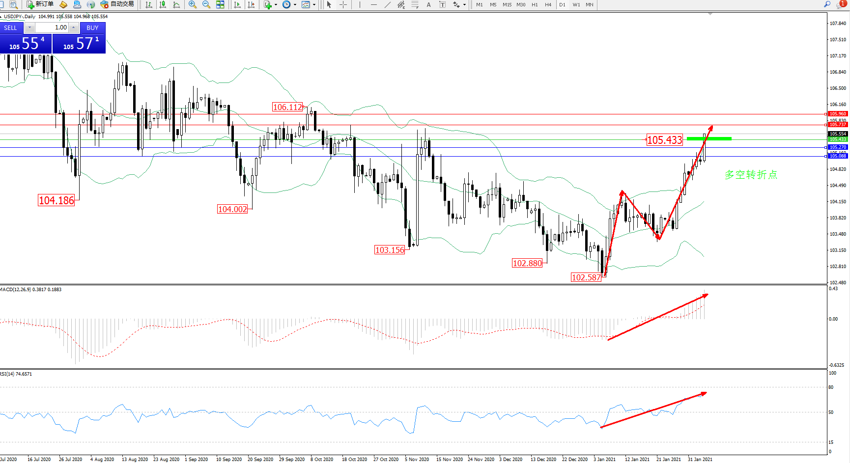 多空转折点:105.433