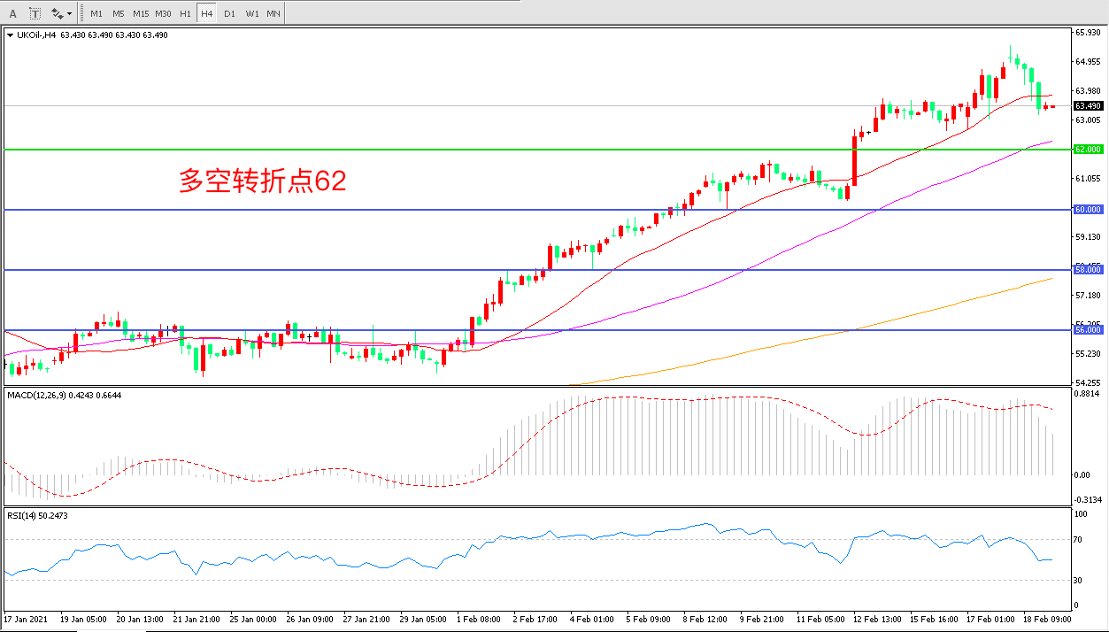 交易策略:  在62.00之上看涨,目标65.00 68.00