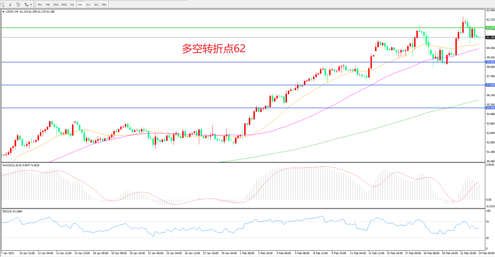 多空转折点:62.00