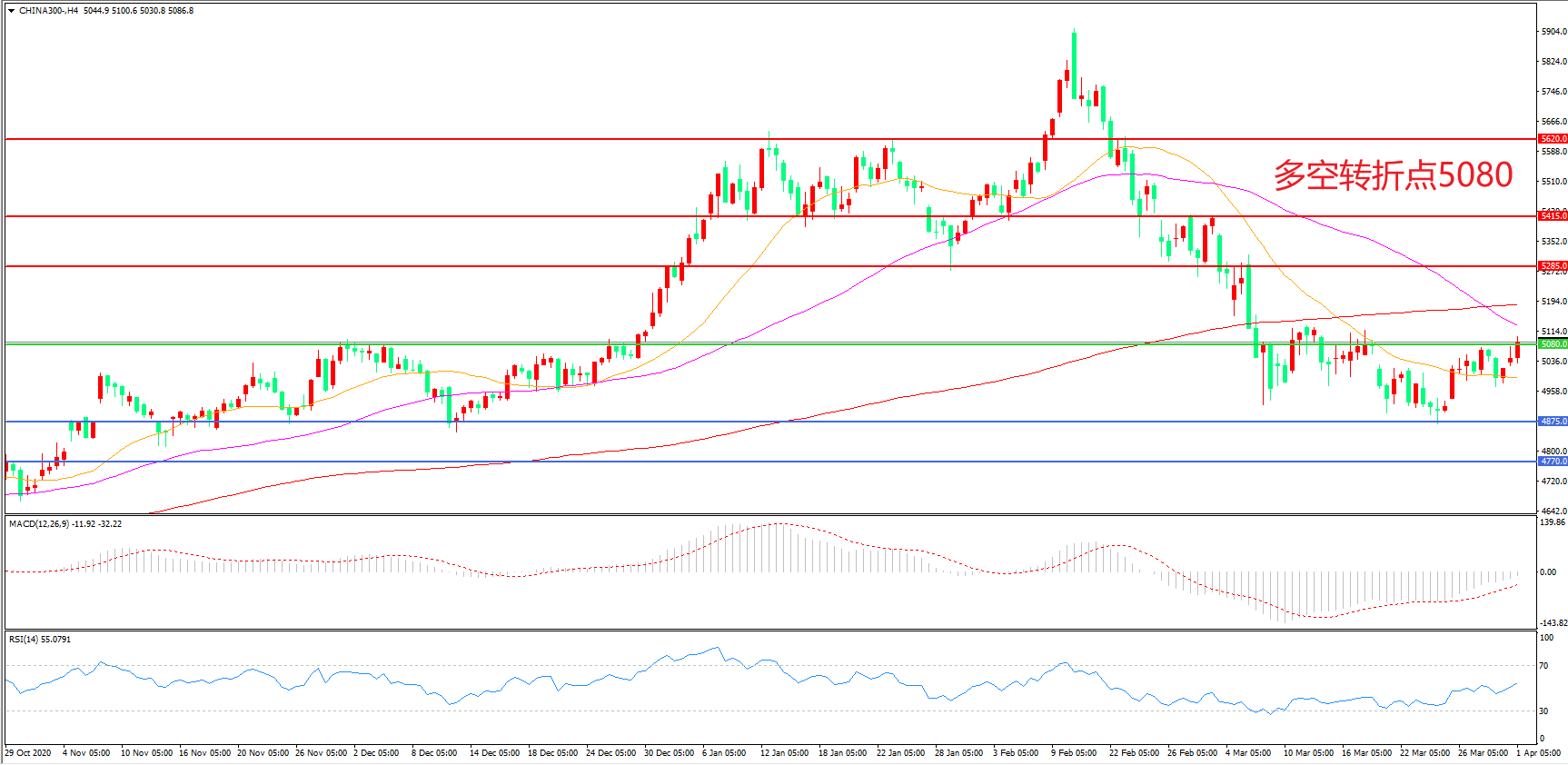 多空转折点:5080.00