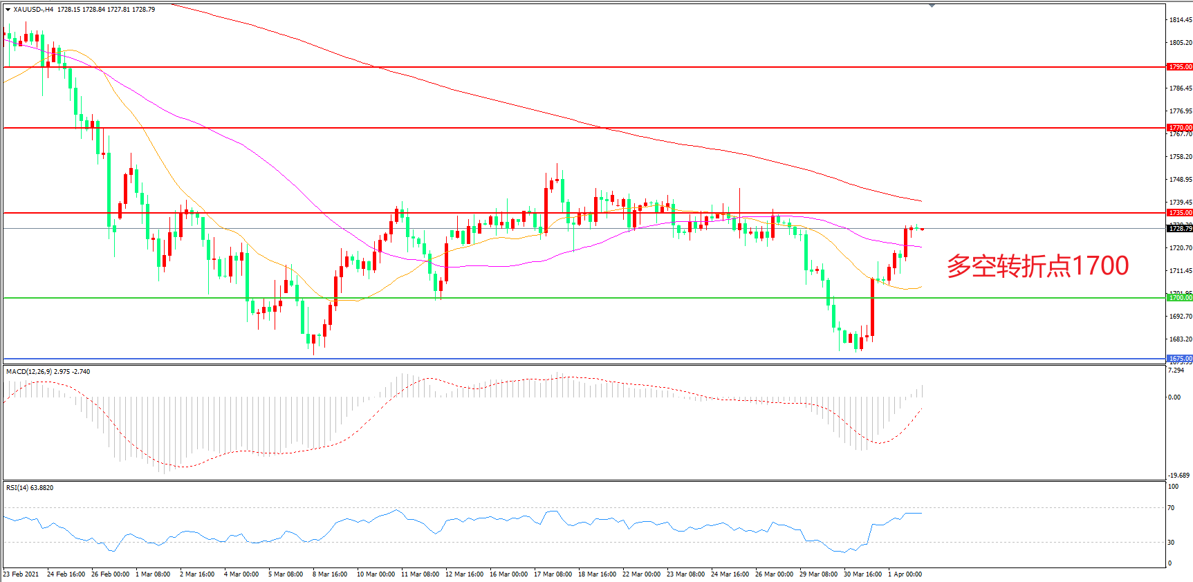 交易策略:在1700.00之上看涨,目标1735.00 1770.00