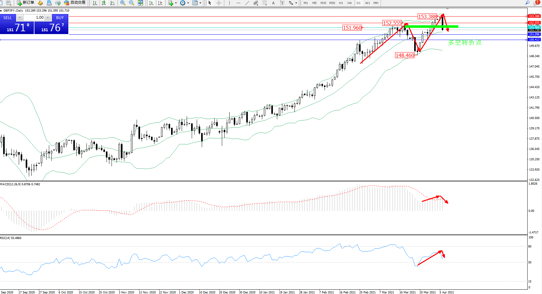 多空转折点:151.960