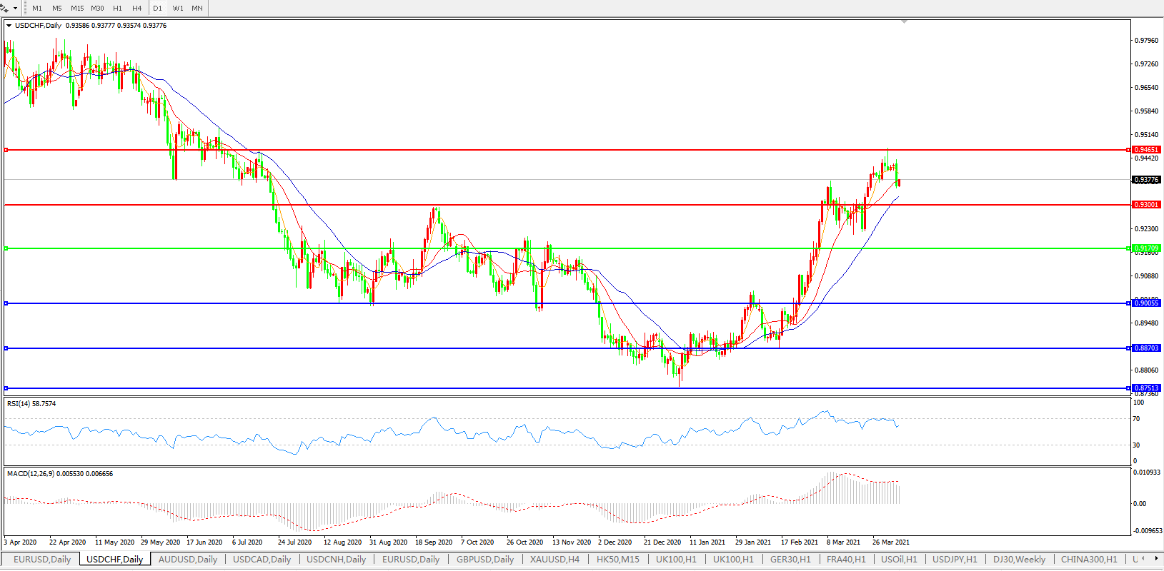 美元回落至两周低位,美元兑瑞郎大幅回落