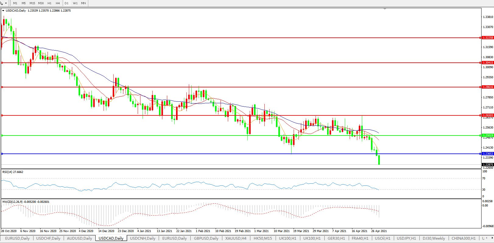 美元兑加元USDCAD 日线图: