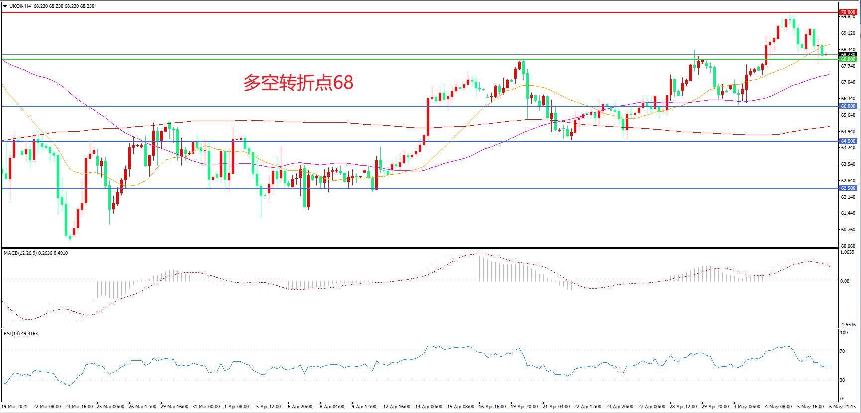 多空转折点:68.00