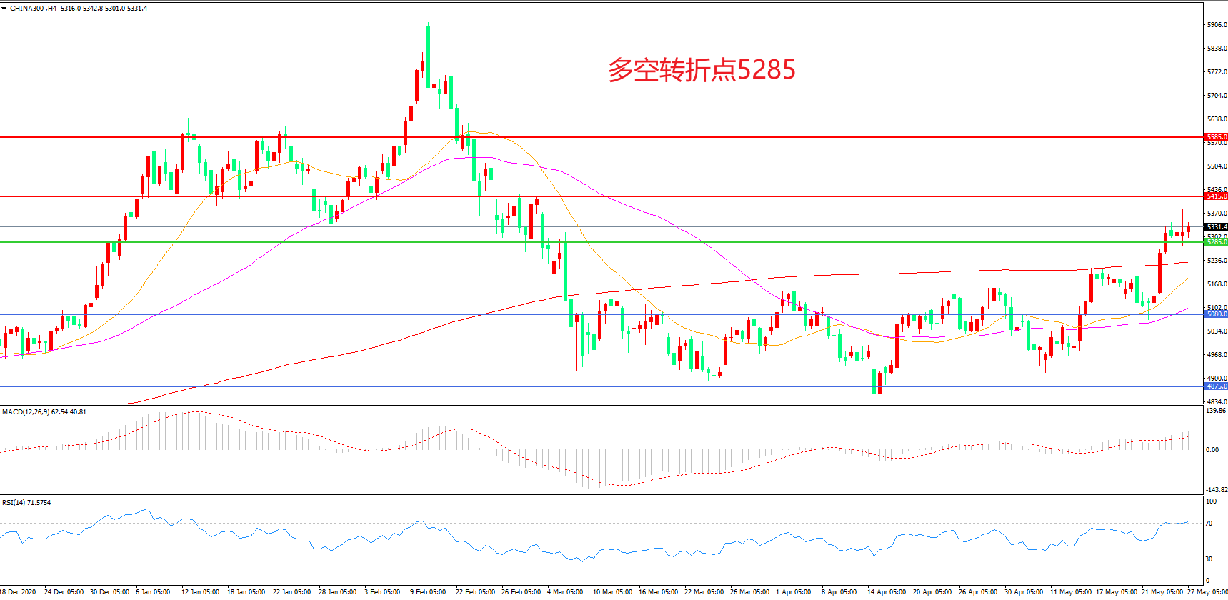 多空转折点:5285.00