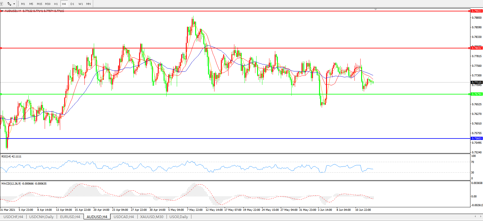 AUDUSD 4小时图:
