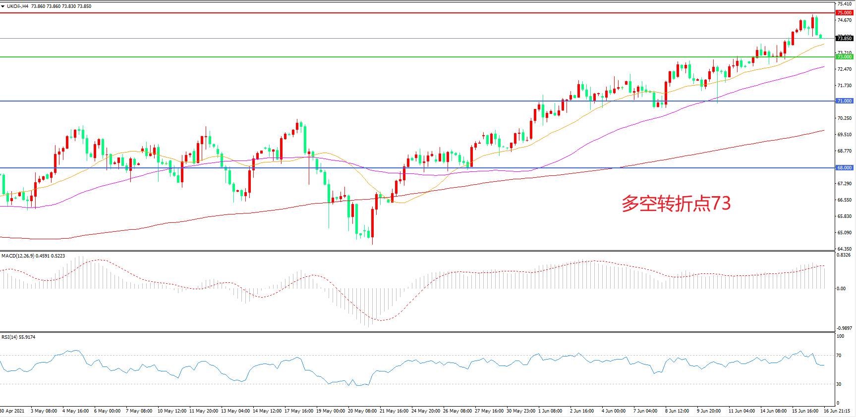 多空转折点:73.00