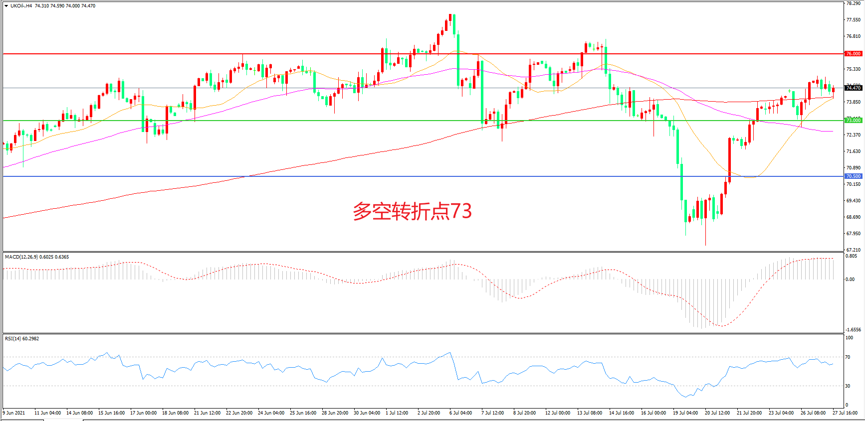 多空转折点:73.00