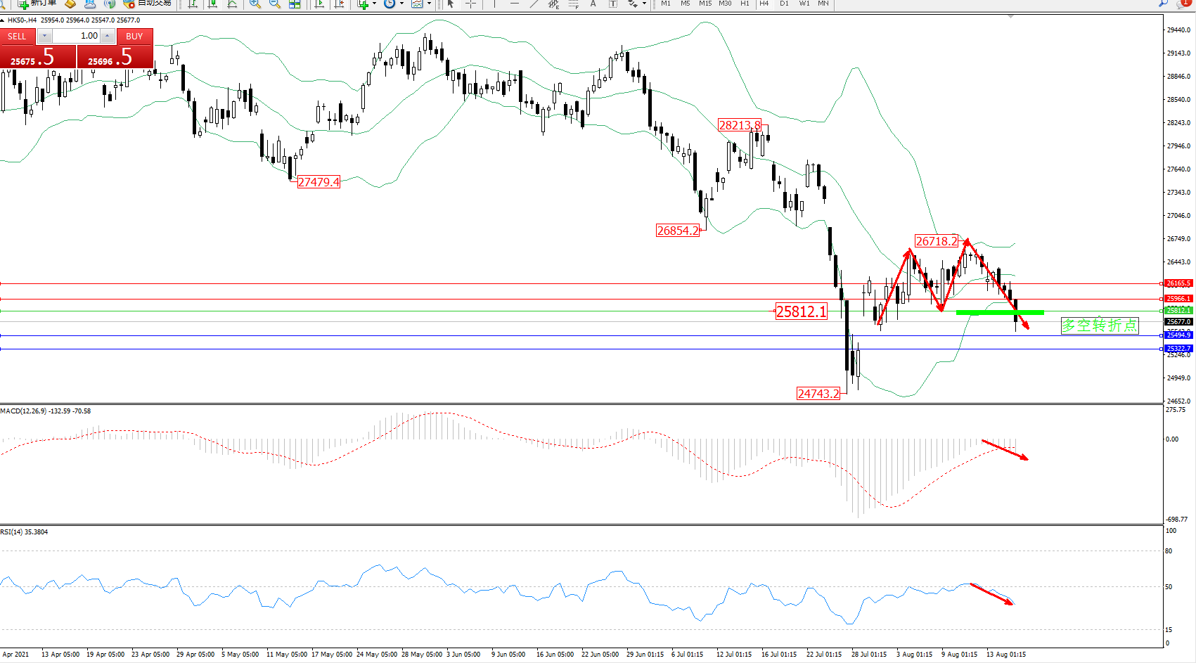 交易策略:25812下方看跌,目标25494、25322