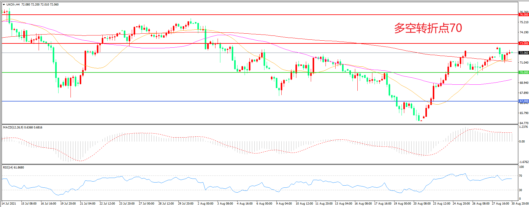 交易策略:在70.00之上看涨,目标73.00 76.00