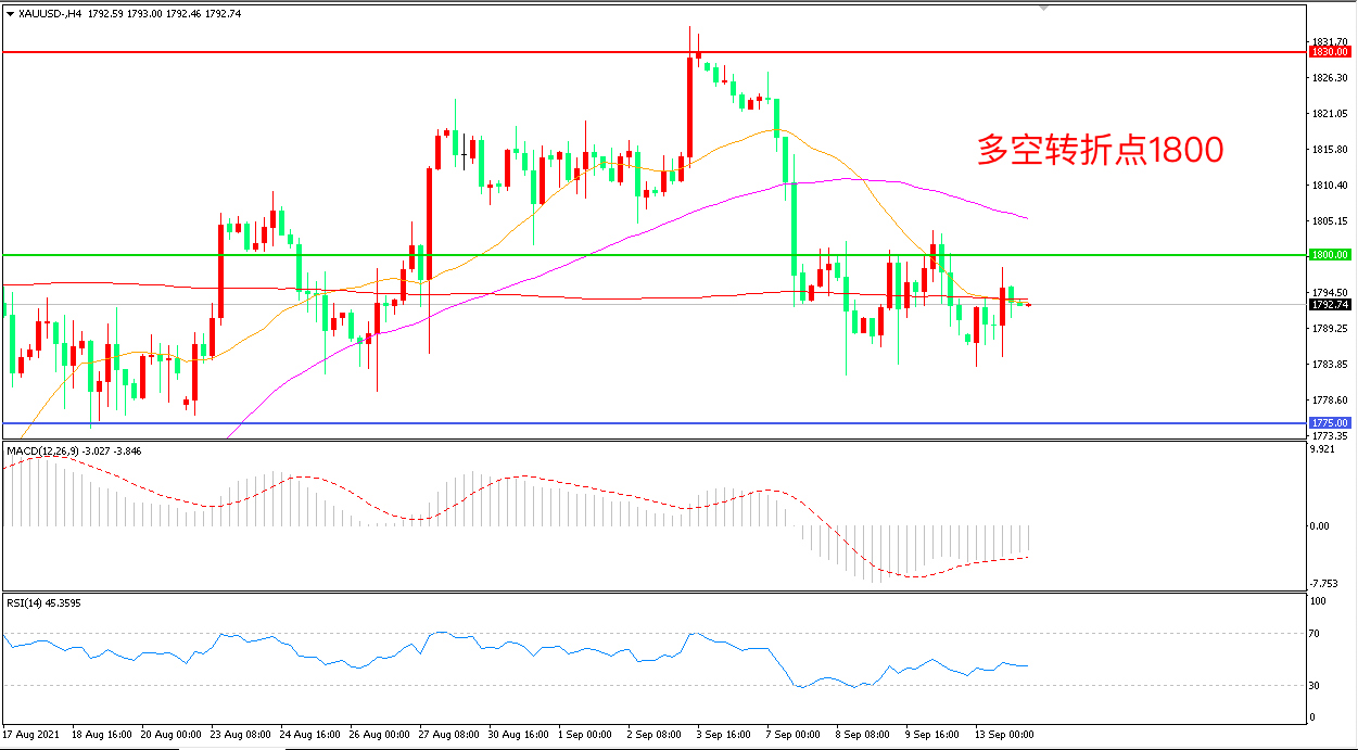 备选策略: 在1800.00之上看涨,目标1830.00            1865.00