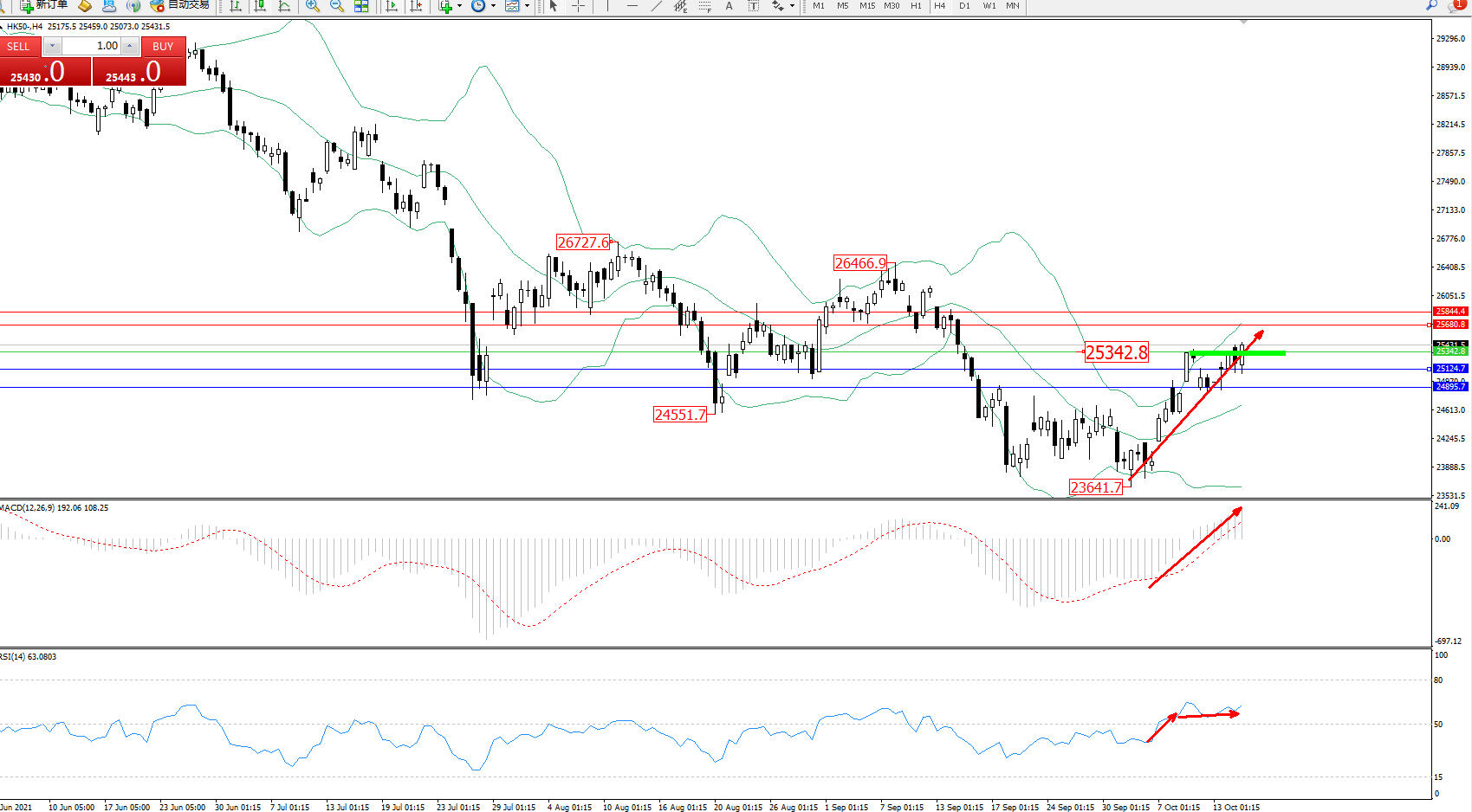 交易策略:25342上方看涨,目标25680、25844