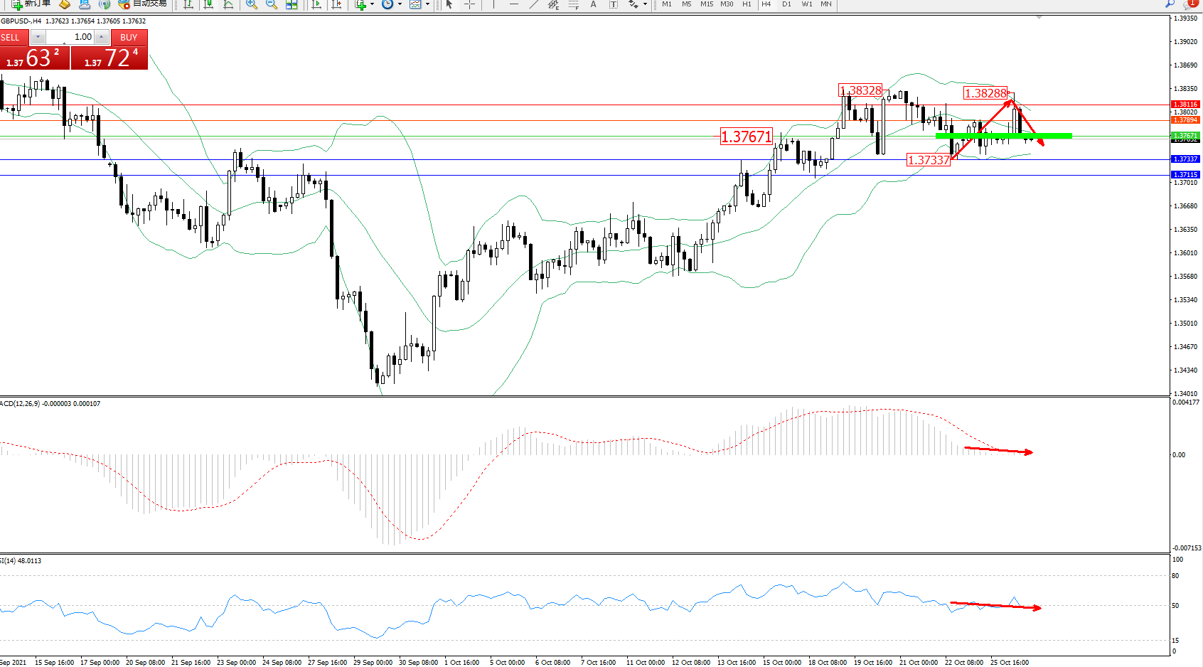 交易策略:1.37671下方看跌,目标1.37337、1.37115