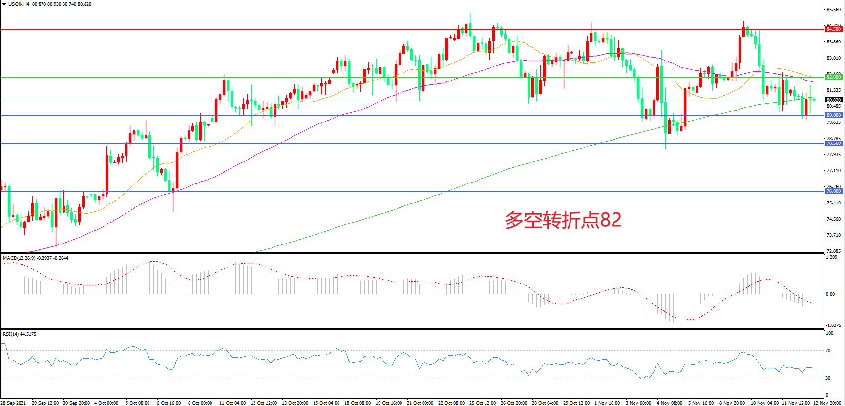 多空转折点:82.00