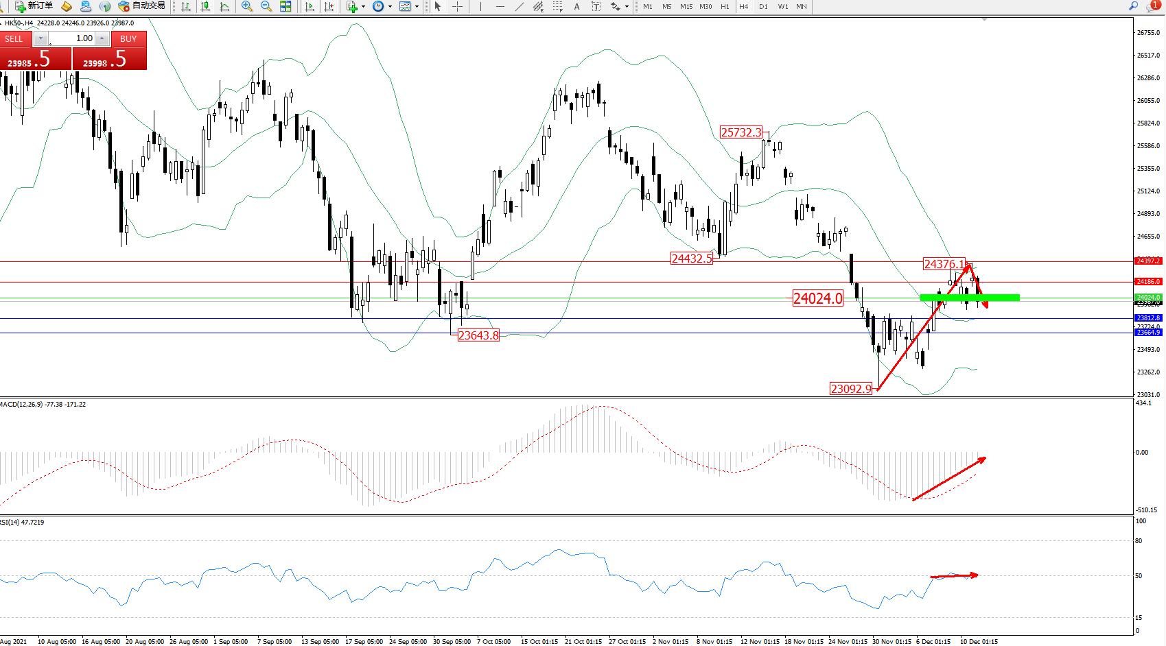 恒指HK50 ——4小时K线图显示: