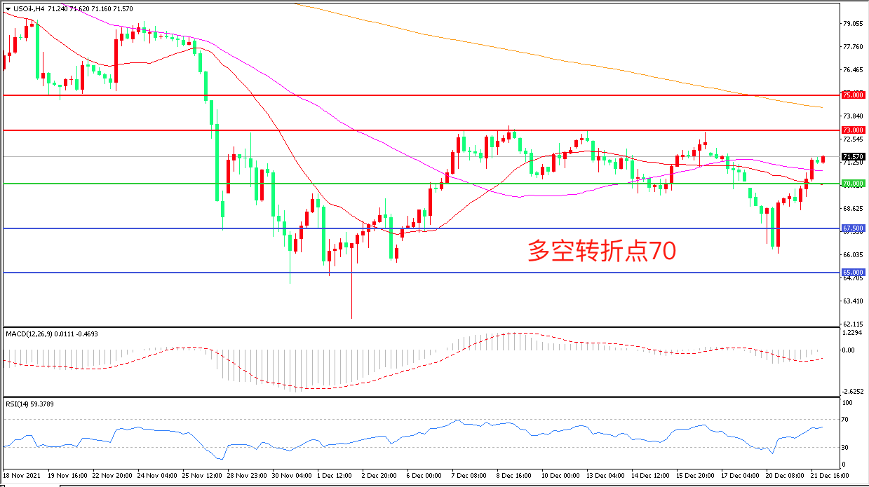 交易策略:在70.00之上看涨,目标73.00        75.00