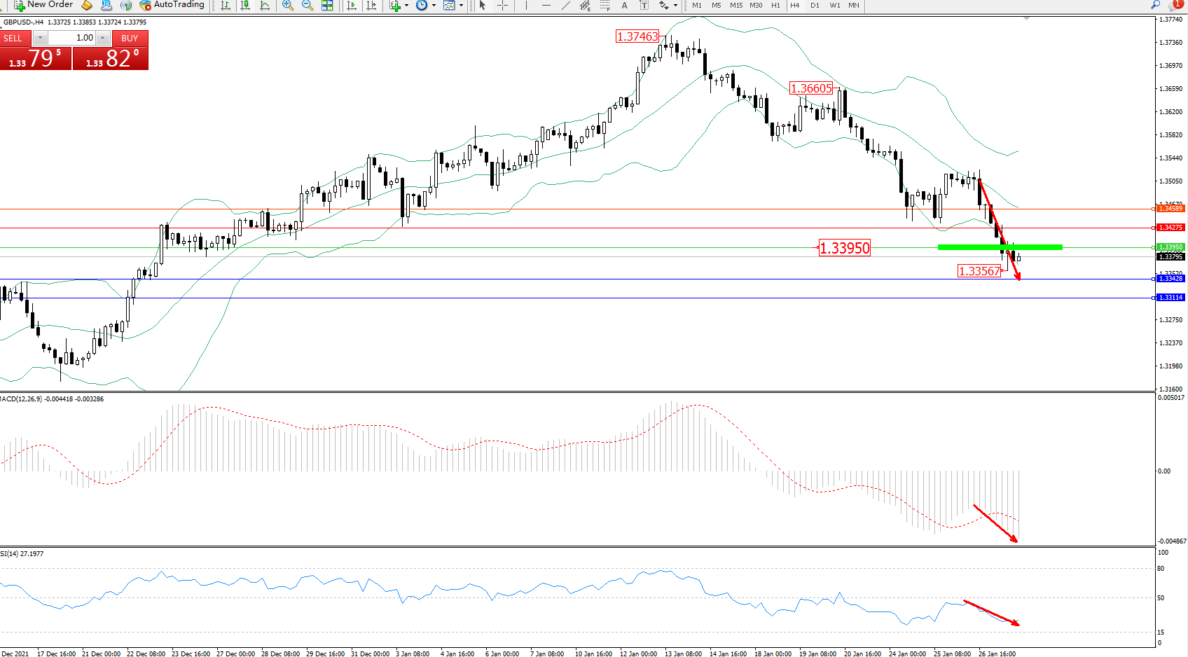 交易策略:1.33950下方看跌,目标1.33428、1.33114