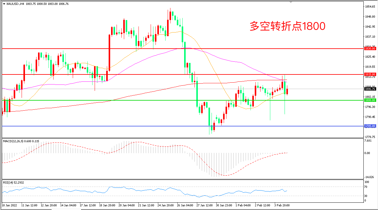 交易策略:在1800.00之上看涨,目标1815.00 1830.00