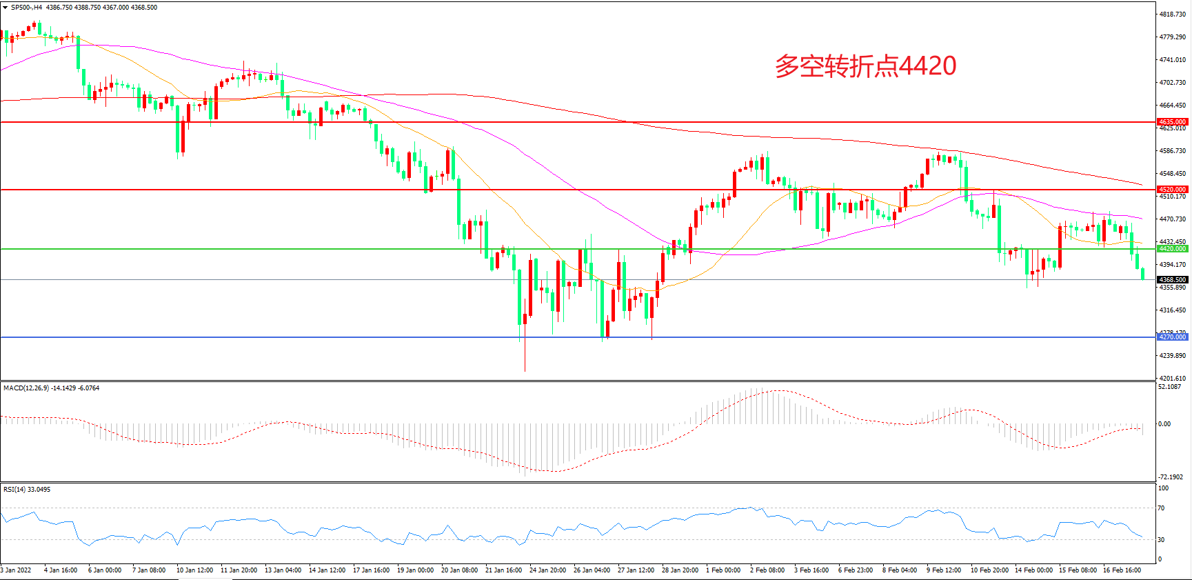 交易策略:在4420.00之下看跌,目标4270.00         4150.00